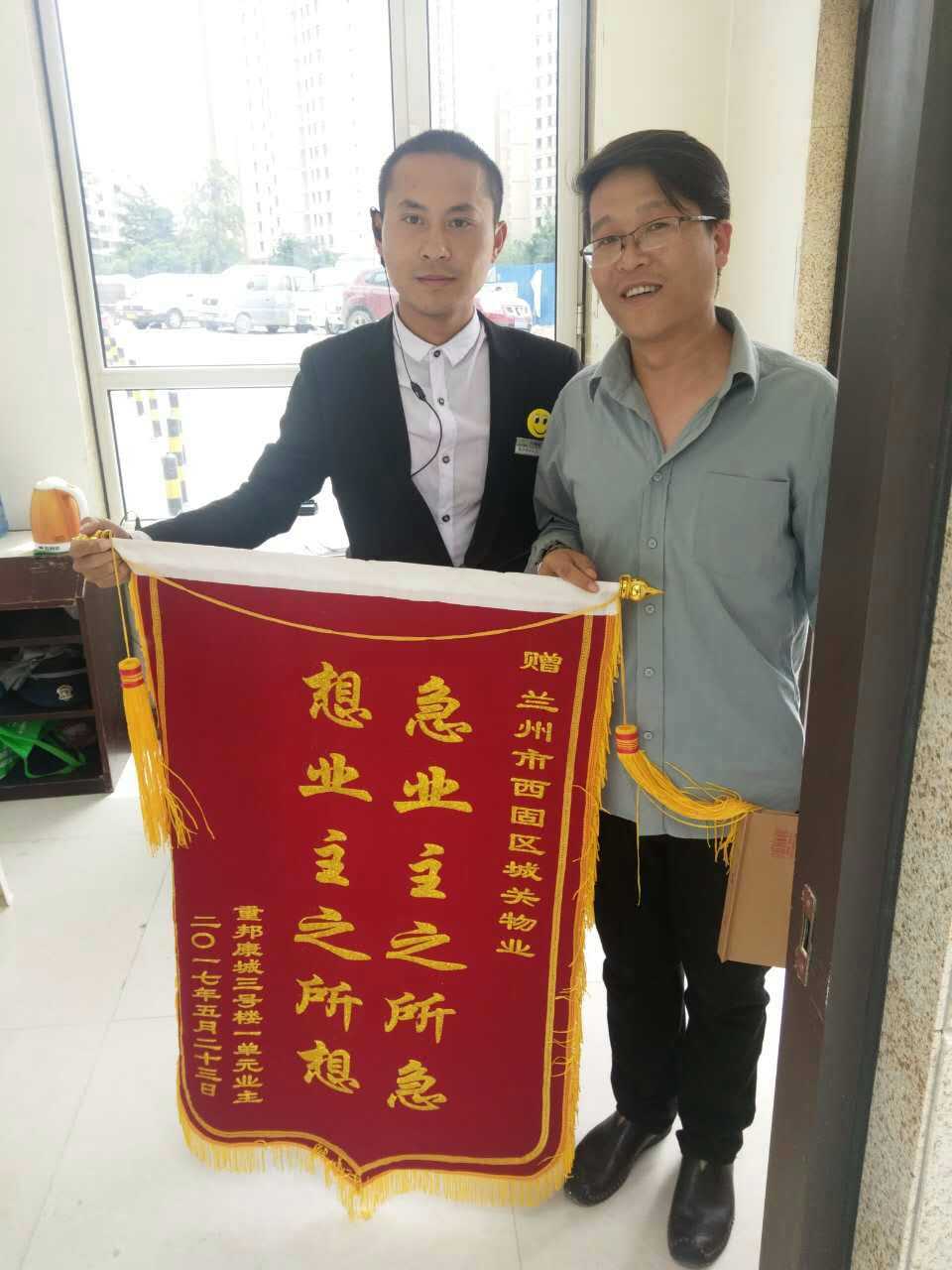 5月24日上午11點左右,重邦康城小區(qū)一戶業(yè)主將一副題為“急業(yè)主之所急,想業(yè)主之所想”的錦旗送到了物業(yè)辦公室,感謝物業(yè)人員在干好本質(zhì)工作的同時,積極熱心的幫忙尋找自家的小狗。該業(yè)主強(qiáng)調(diào),自從入住這個小區(qū)以來,每一天都過的很舒心,城關(guān)物業(yè)工作人員專業(yè)素質(zhì)強(qiáng),服務(wù)熱情周到。在得知小狗丟了的情況下,積極主動的安排人員幫忙尋找,并最終找到小狗。感謝城關(guān)物業(yè)提供如此優(yōu)質(zhì)、貼心、專業(yè)的服務(wù)。田曉晨經(jīng)理說道,業(yè)主的事不論大小,只要有需要,我們定會全力以赴。