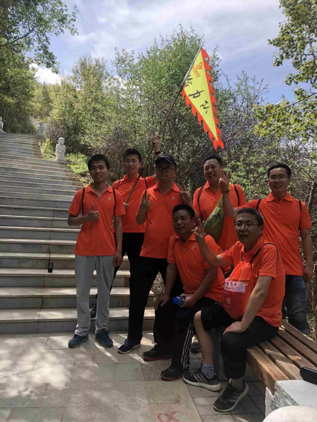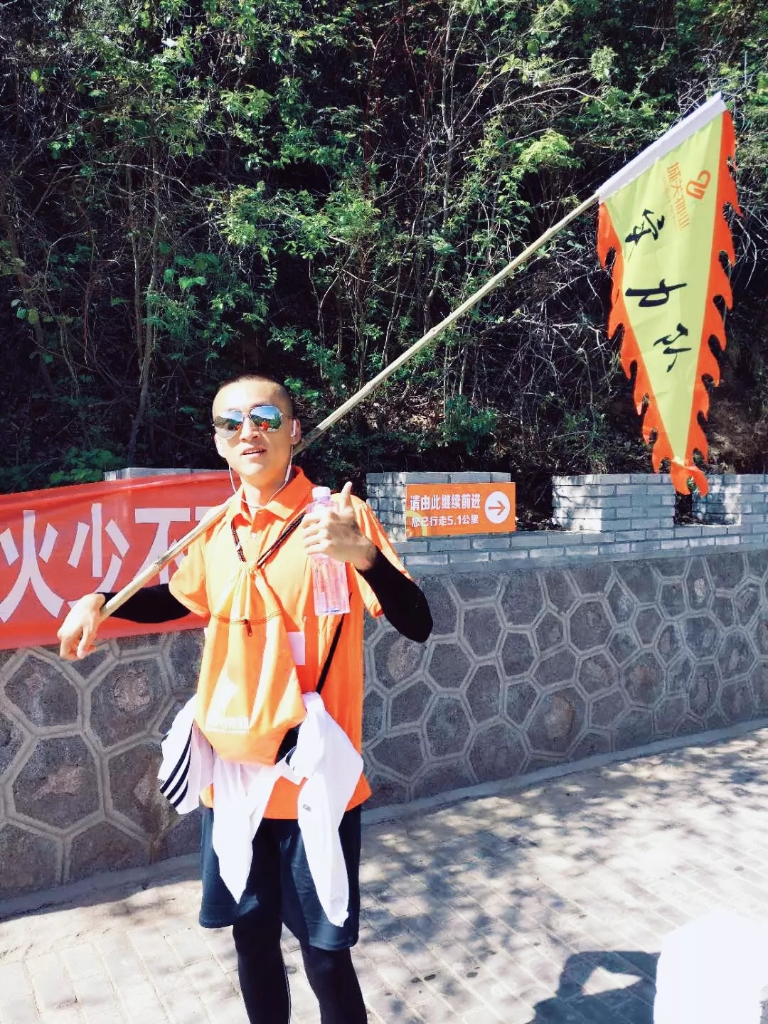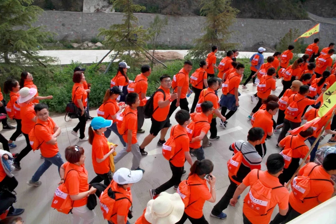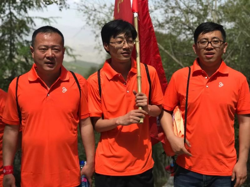 大家身著代表著企業(yè)的橙色上衣,肩扛代表各隊的旗幟,