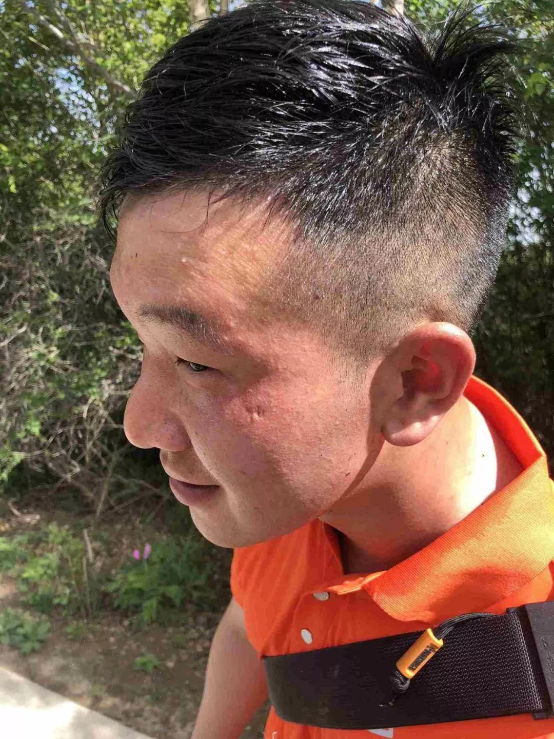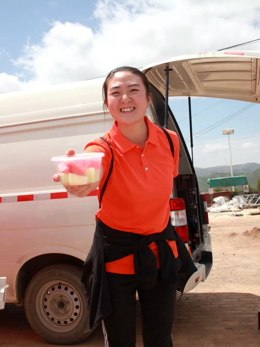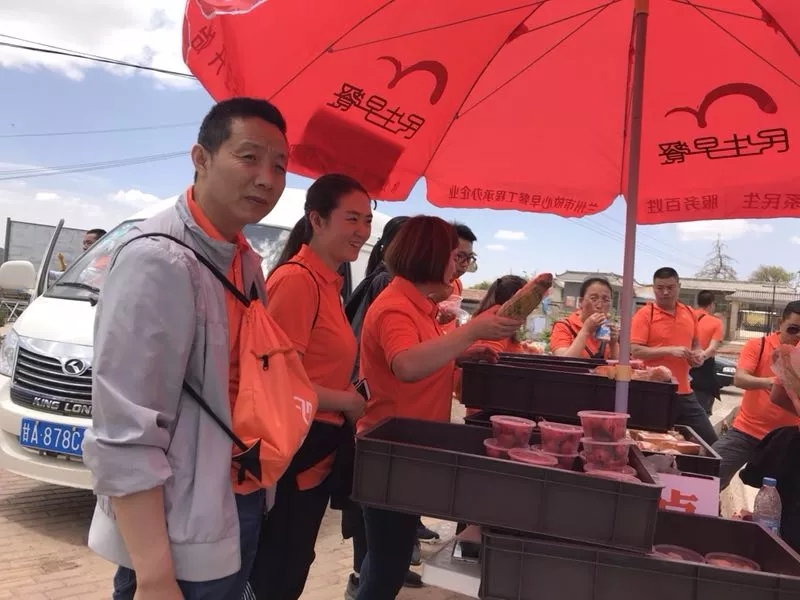 大家身著代表著企業(yè)的橙色上衣,肩扛代表各隊的旗幟,